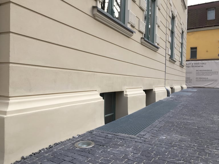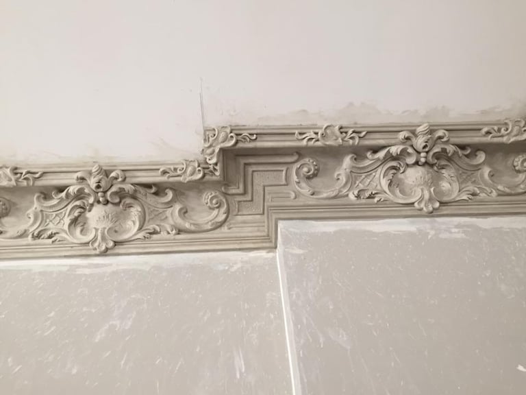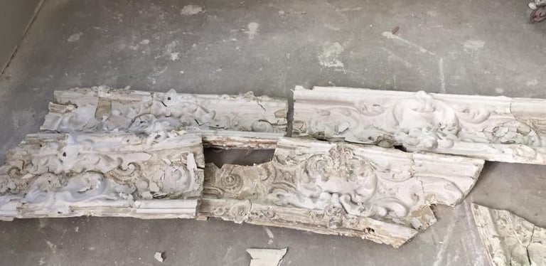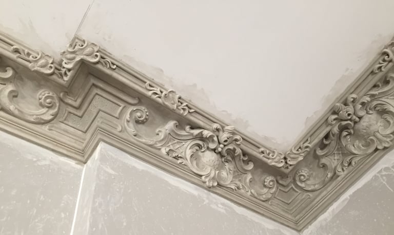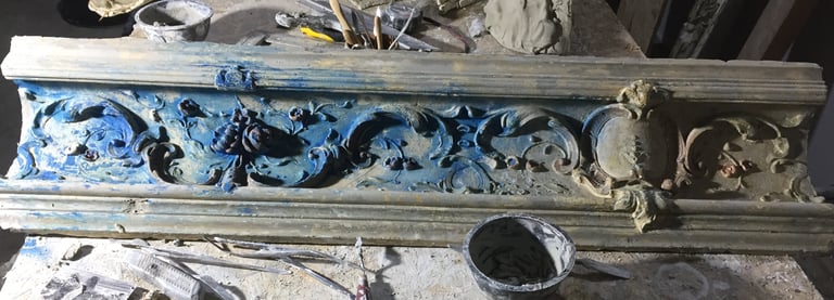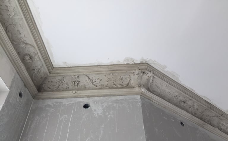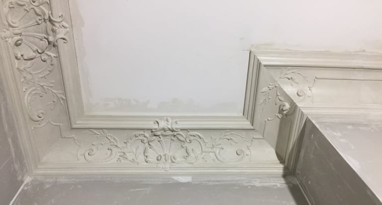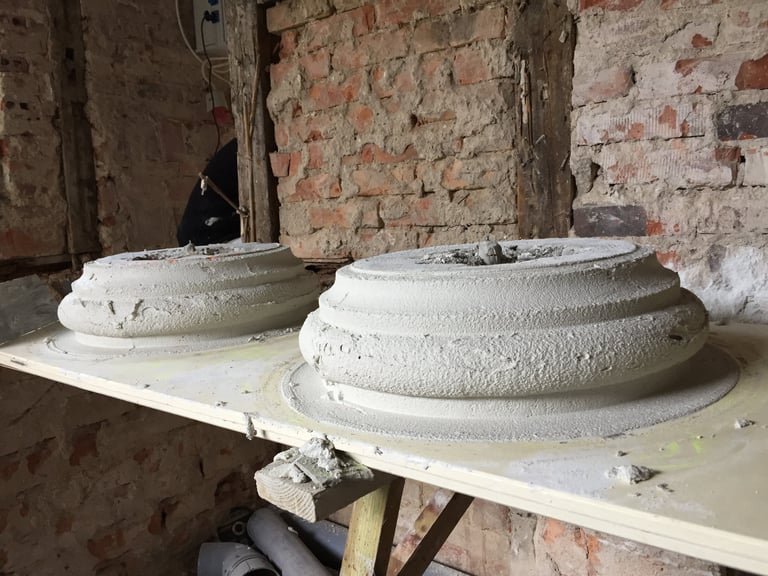 Podczas prac odtworzono pięć różnych typów zabytkowych gzymsów, zachowanych jedynie we fragmentach.