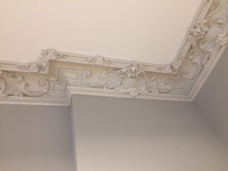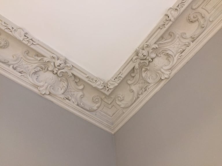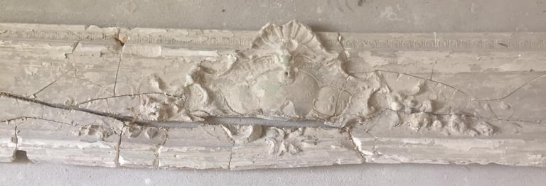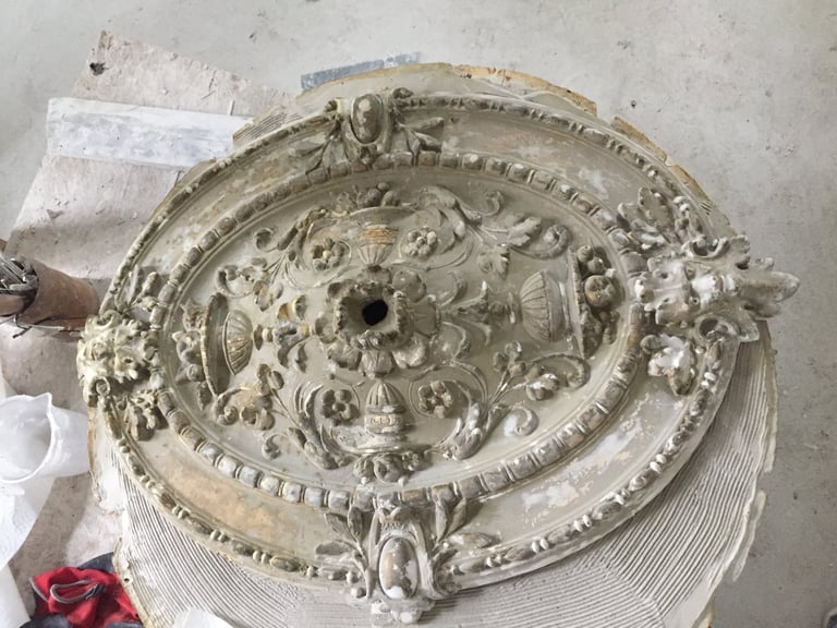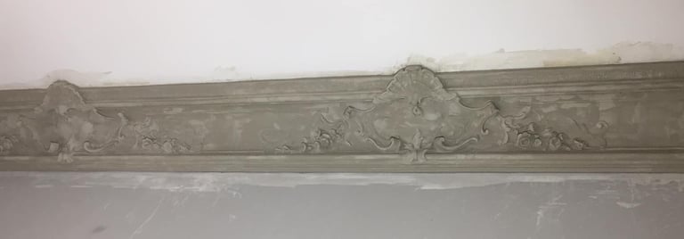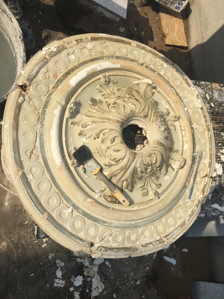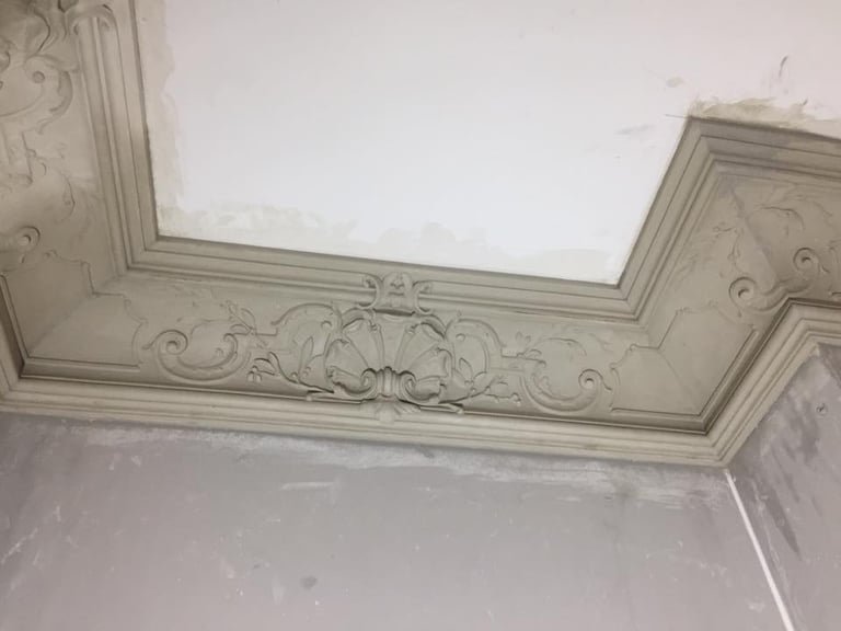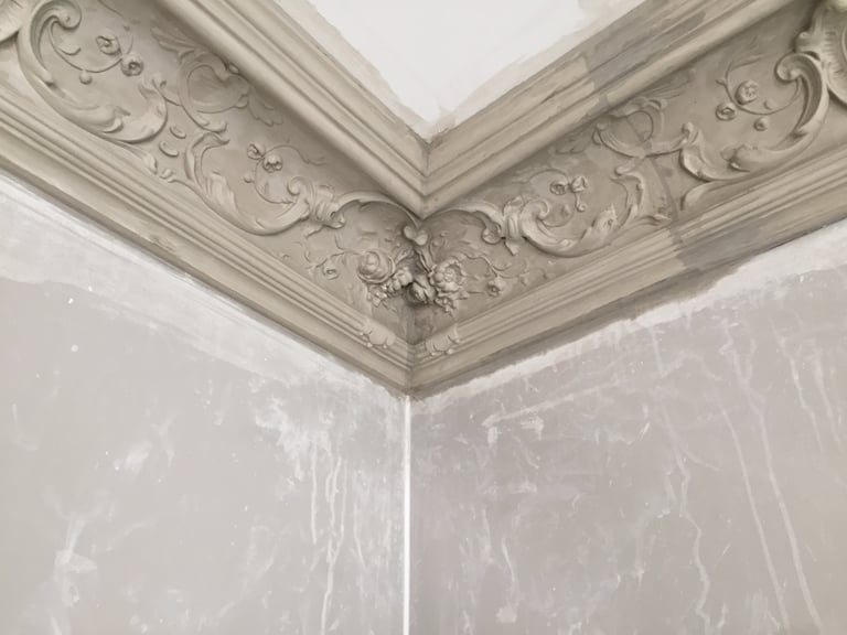 Po scaleniu dekoracje zostały wzmocnione i uzupełnione tradycyjnymi masami sztukatorskimi.
