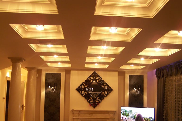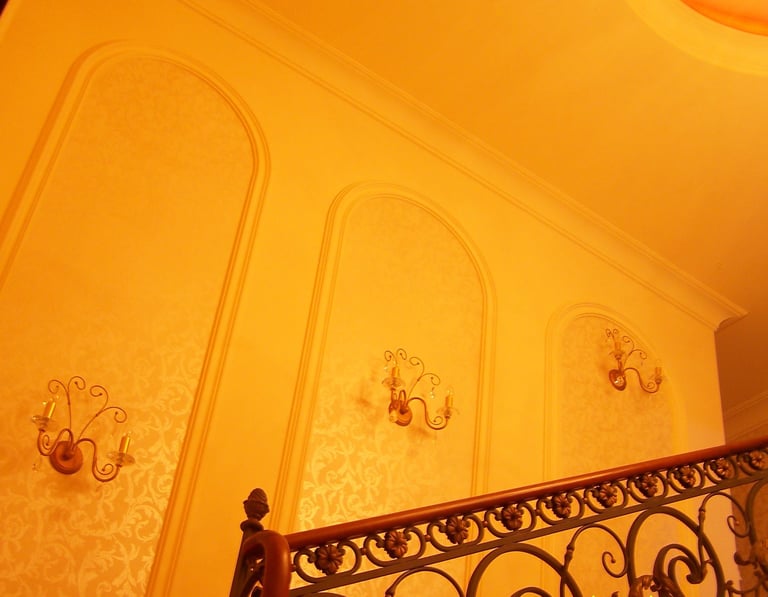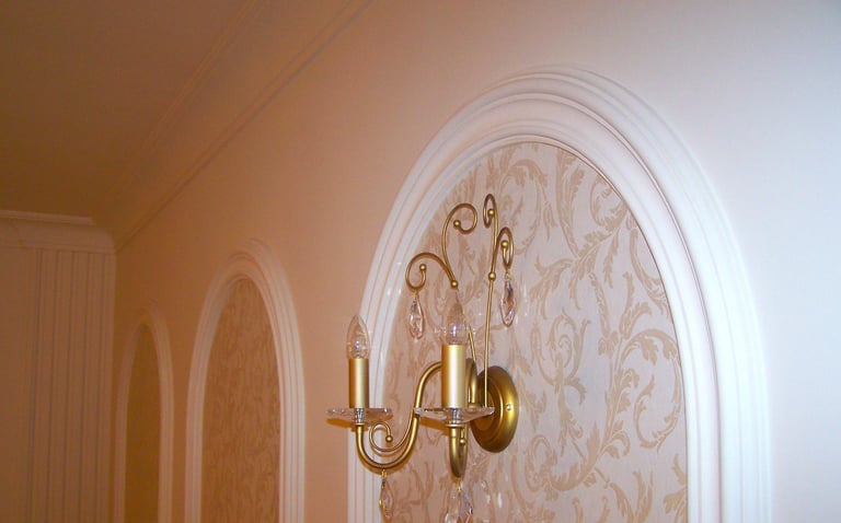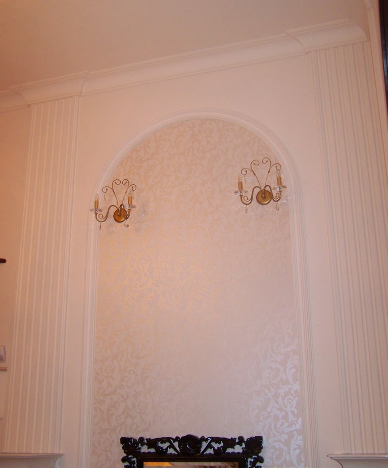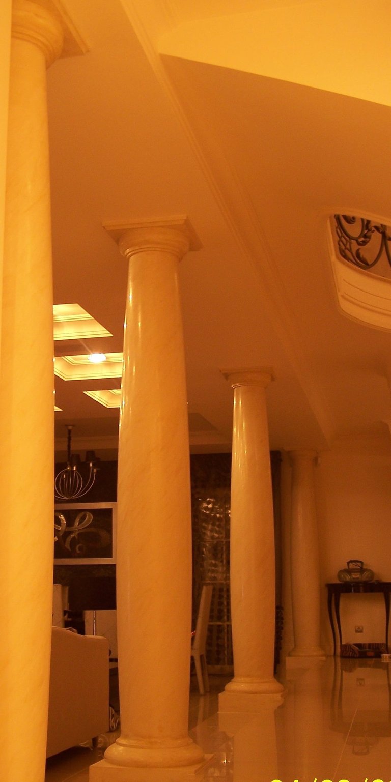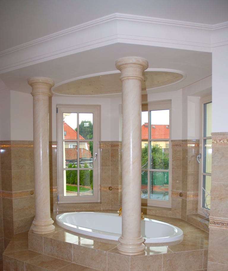 Wykonaliśmy pełną zabudowę sztukateryjną wnętrza oraz ręczne wykończenie kolumn techniką stIukU , nakładając kilka warstw specjalnego materiału.